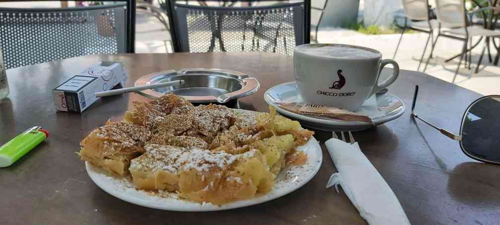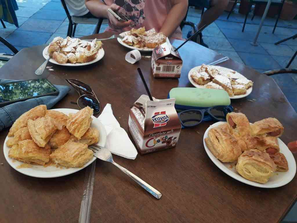 Polecamy tu greckie wyroby cukiernicze, znacząco różniące się od tego, co oferują nasze krajowe cukiernie (np. baklawa lub rewani), ale także to, czym na co dzień zaspokajają głód nasi greccy przyjaciele mianowicie wszelkiego rodzaju „pierogi” z francuskiego ciasta z nadzieniem z fety, sera, mięsa, szpinaku, z parówką czy też na słodko z kremo-budyniem (bugacca).