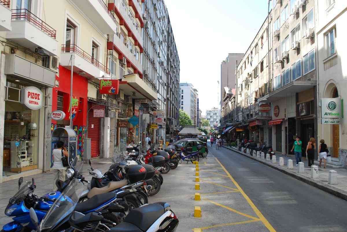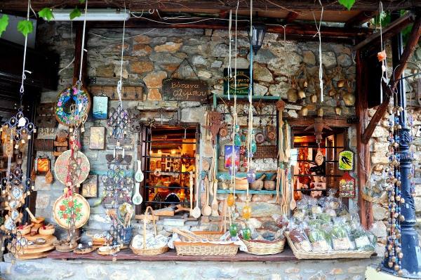 Jeżeli chce się zakupić pamiątki typowo Greckie, czy tez miejscowe, to należałoby zacząć od zakupów w sklepikach w Paleo Panteleimonas (można zmówić przejazd do tej miejscowości lub zwiedzić ją podczas wycieczki na Olimp), gdzie pełno jest miejscowego rękodzieła, miodów z owocami, przetworów, ozdób do domu itp. Warto może także rozejrzeć się w okolicznych sklepach (lub np. podczas wycieczki na Meteory w sklepie przy pracowni ikon) za współczesnymi kopiami antycznej ceramiki (dzbany, amfory, talerze) z różnych okresów starożytnej Grecji lub np. miniaturami rzeźb, popiersi, statuetek greckich myślicieli, filozofów (Platon, Arystoteles, Sokrates). Jeżeli kogoś to interesuje to bez trudu znajdzie obszerny wybór takich figur w obszernym asortymencie.
